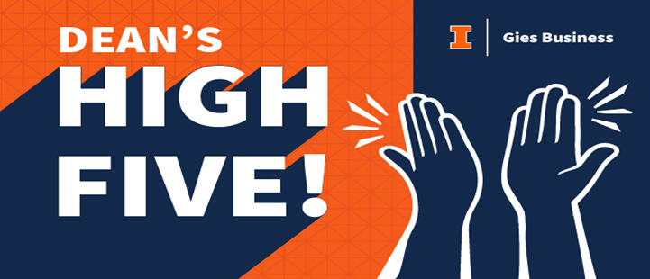 Please accept this Dean’s High Five as a sincere expression of my appreciation. Thank you for the energy and commitment you bring to Gies. You help make this a truly special place.